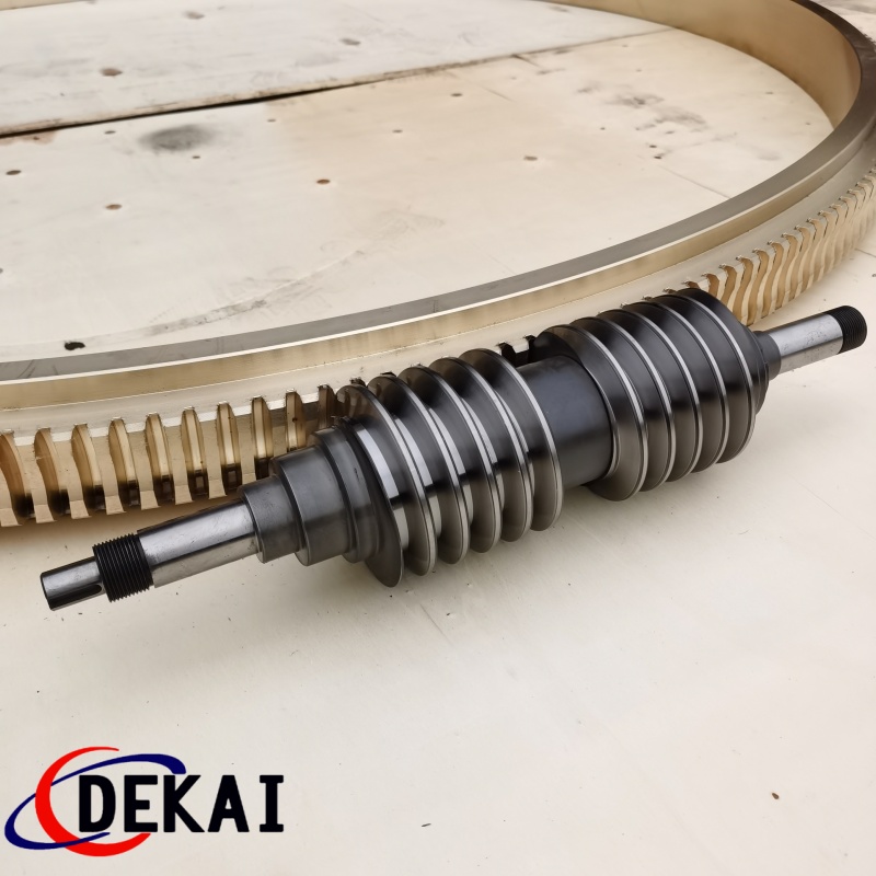 精密雙導程蝸桿副有很多優點:分度精度高,側隙可調整至0.01-0.03mm;齒面接觸穩,不會改變中心距,調整準確,方便可靠,裝配靈活。裝配時,通過調整環來獲得合適的嚙齒側隙。使用中如果因為磨損導致傳動間隙增大,只要調整一下蝸桿的軸向位置,可以使蝸輪蝸桿傳動副恢復到原來的精度,不需要更換新的蝸輪蝸桿,非常經濟實用。蝸桿采用40Cr,42CrMo,38CrMoAl合金鋼,渦輪采用錫青銅離心澆鑄,具有較高強度耐磨性。