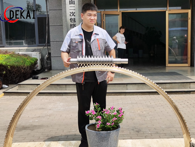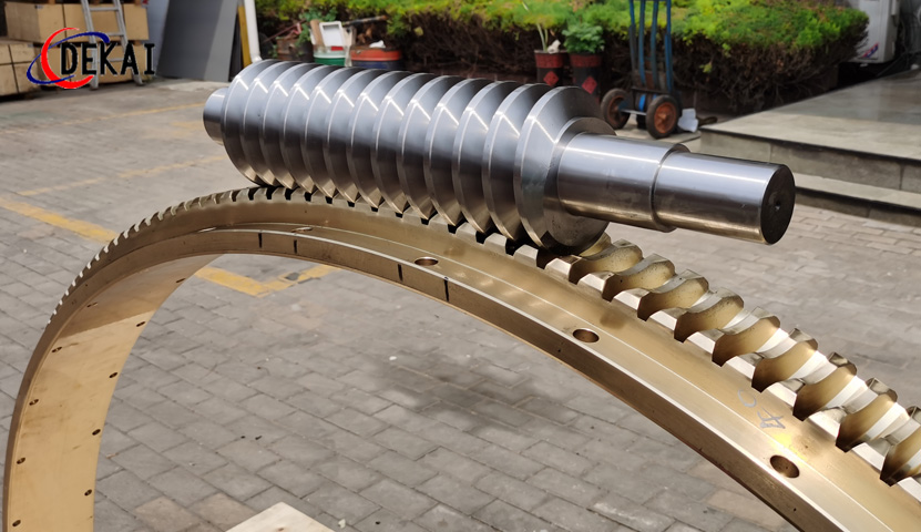 分度精度高,側(cè)隙可調(diào)整至0.01~0.03Mmm;齒面接觸穩(wěn),不會(huì)改變中心距。調(diào)整標(biāo)準(zhǔn),方便可靠。裝配靈活,裝配時(shí),用調(diào)整環(huán)來(lái)獲得合適的嚙合側(cè)隙。使用中如果因?yàn)槟p導(dǎo)致傳動(dòng)間隙增大,只要調(diào)整一下蝸桿的軸向位置,可以使蝸桿蝸輪傳動(dòng)副恢復(fù)到原來(lái)的精度,不需要更換新的蝸桿,蝸輪,比較實(shí)用。蝸桿材質(zhì)采用40Cr,42CrMo、38CrMoAl合金鋼。蝸桿采用錫青銅ZCuSn10Pb1離心澆鑄,具有高強(qiáng)度耐磨性。