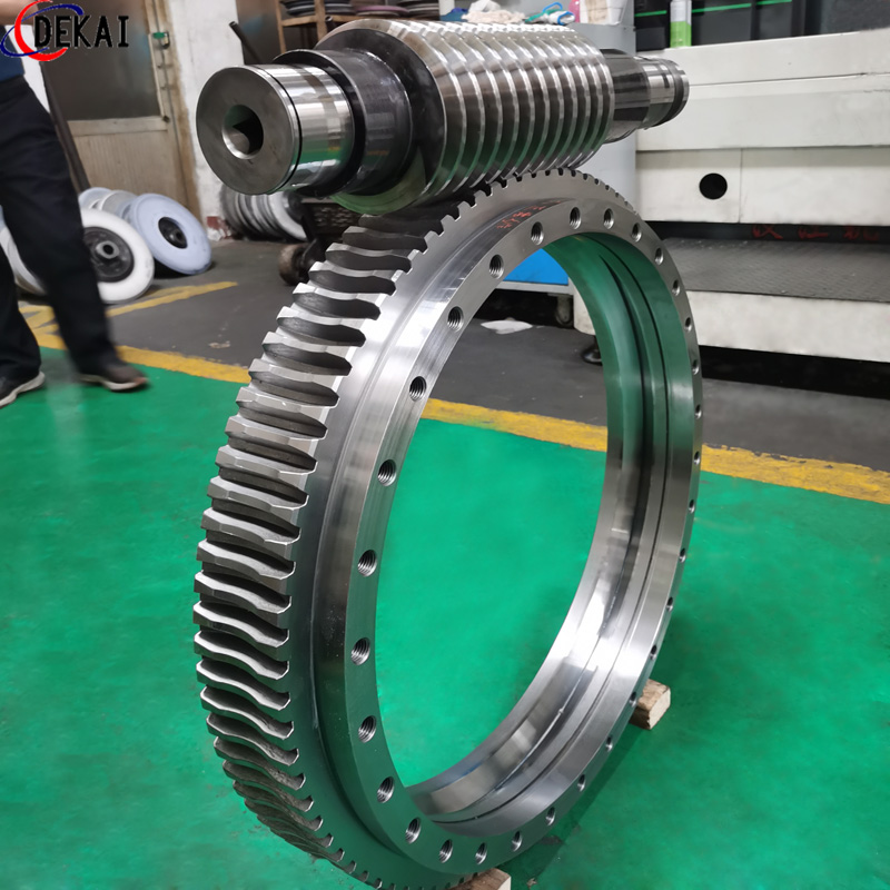 蝸輪系統:材質:蝸輪特殊高強力鋁青銅合金;蝸桿:38CrMoAl合金鋼,正常化后滲碳HRC60以上。