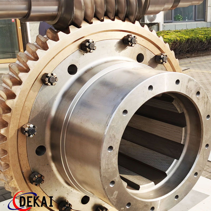 平面二次包絡環面蝸桿傳動于1971年發明的一種新型蝸桿傳動裝置,這種蝸桿副具有以下特點:蝸桿齒面硬度高,表面經滲碳后精確磨削而成,精度高,表面光滑。加工過程與成形原理吻合度高,傳動精度高。蝸桿與蝸輪的嚙合為多齒接觸,每齒為瞬時雙線接觸,齒面接觸區可達百分之七十以上。嚙合面的綜合曲率半徑大。接觸線與相對速度方向夾角大,動壓油膜形成及保持性好。此種蝸輪副承載能力大,傳動效率高,耐磨損,可廣泛地應用與冶金,礦山,化工,建筑,橡塑,船舶等各種行業中。