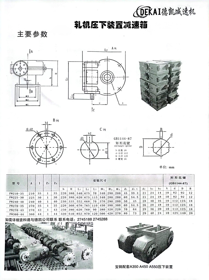 軋機壓下二次包絡減速機,內部蝸輪蝸桿采用平面二次包絡技術,一種新型的傳動裝置,其承載能力大,傳動效率高,結構緊湊,合理,使用壽命長,外形精美。特別適用于大型鋼廠的各種連鑄機械。