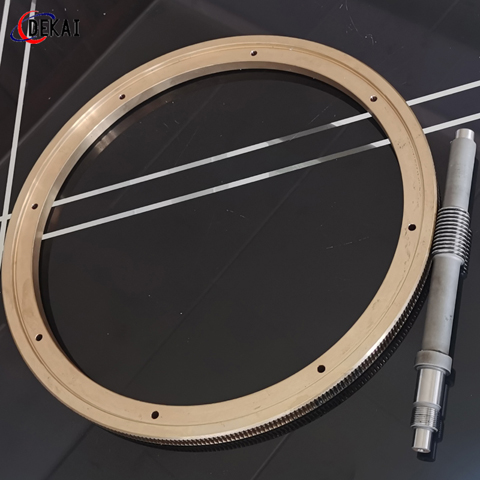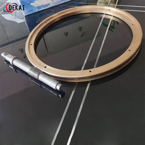 蝸輪系統:材質:蝸輪特殊高強力鋁青銅合金;蝸桿:38CrMoAl合金鋼,正常化后滲碳HRC60以上。