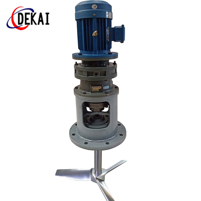 攪拌常用減速器:擺線針輪行星減速器、針輪減速器、皮帶減速器、諧波減速器、行星減速器、蝸輪蝸桿減速器、無極變速器。減速器的選型原則:出軸旋轉方向單向或雙向、攪拌軸軸向力的方向;減速器是否能承受該軸向力;傳動比、功率、進出軸的轉速,兩軸相對位置;防爆或非防爆;外形尺寸要滿足安裝及檢修要求;工作平穩性,如振動和載荷變化情況;使用地區、工廠制造和檢修能力;造價是否昂貴等進行綜合考慮;特殊要求:有防爆要求時,一般不能采用皮帶傳動,而應用閉式齒輪或蝸輪傳動。傳遞功率較大并連續工作時,一般選擇傳動效率較高的齒輪傳動等。若電機已定,而所配用的減速器所得的輸出軸轉速與工作要求的攪拌轉速不一致時,可根據需要作相應變化。對于同樣大小的功率,可允許選擇所得轉速比要求轉速稍低一些但不能偏高。這是由于攪拌器的轉速增加而所需攪拌功率將顯著提高,一般攪拌功率與攪拌轉速的三次方成正比。