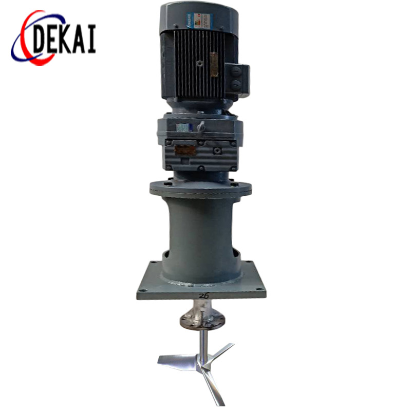 輕便型攪拌器是一種特殊的攪拌機構,它裝在各種開式容器上構成攪拌液態介質的攪拌罐。工業上成批地生產八種結構兩種型式的輕便型攪拌機構,用來攪拌液態介質攪拌罐容積為0.1~10米3。對于這些攪拌罐來講,一型攪拌器裝在電動機法蘭上,這樣,攪拌器的轉速和電動機的轉速相同,攪拌罐容積為0.63米3,轉速等于1380轉/分,功率為0.4千瓦;容積達到4米3時,功率為1.1千瓦。在容積為1.6~10米3的攪拌罐上安裝功率為3千瓦和轉速為948轉/分的電動機。一型輕便型攪拌器適于攪拌動力黏度不大于1帕斯卡·秒的液態介質。二型輕便型攪拌器用于攪拌高粘度的液態介質。應用輸出軸轉速為300轉/分和功率為2.2千瓦的電動機變速器作為這種攪拌器的動力。輕便型攪拌器的工作機構是葉片傾斜角a=24°的三葉片攪拌器。搖擺式攪拌器裝在攪拌罐殼體的側壁上,并且用卡緊器進行固定。輕便型攪拌器的典型安裝原理直徑為D的攪拌罐應該裝設四個寬為0.1D的隔板。
