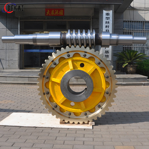 平面二次包絡(luò)蝸桿副的特征:蝸桿采用合金鋼40Cr、42CrMo、 38CrMoA1調(diào)質(zhì)及離子氮化處理,齒面經(jīng)硬化處理后,磨制而成,齒面硬度高(HRC ≥58)粗糙度低(Ra≥0. 8)齒形精度高,表面光滑。